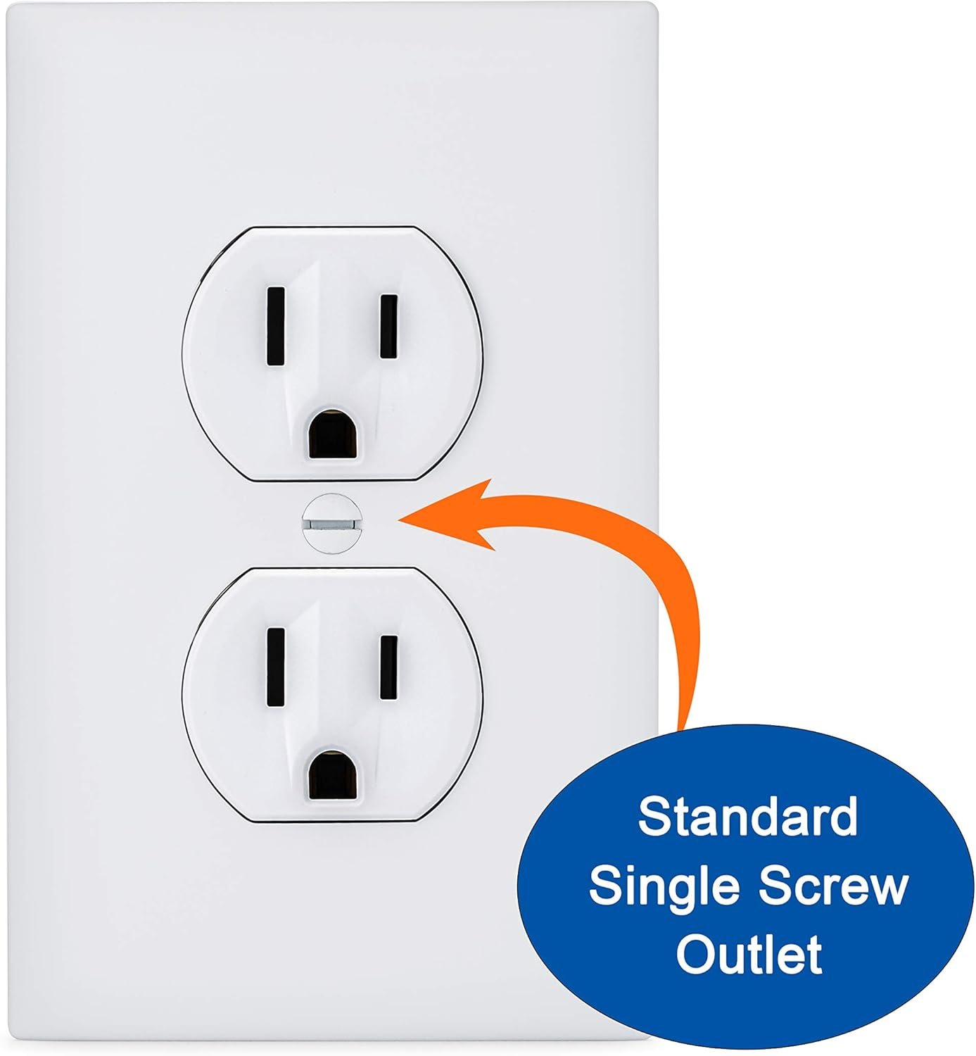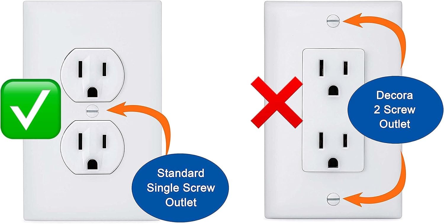 - Outlet type: Standard single center-screw outlets only (not “Decora” 2-screw styles).
